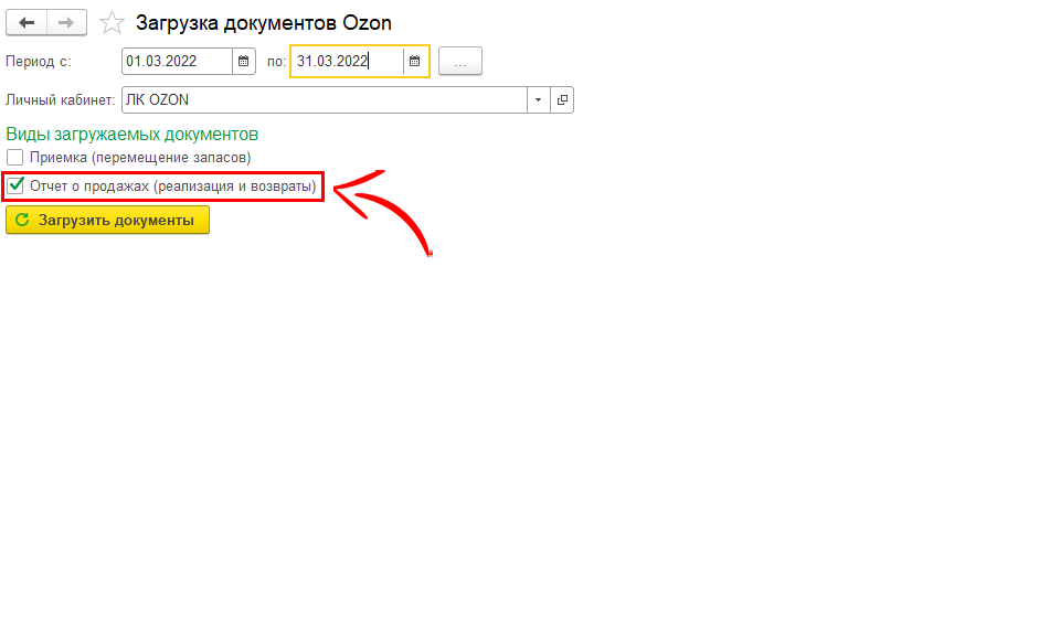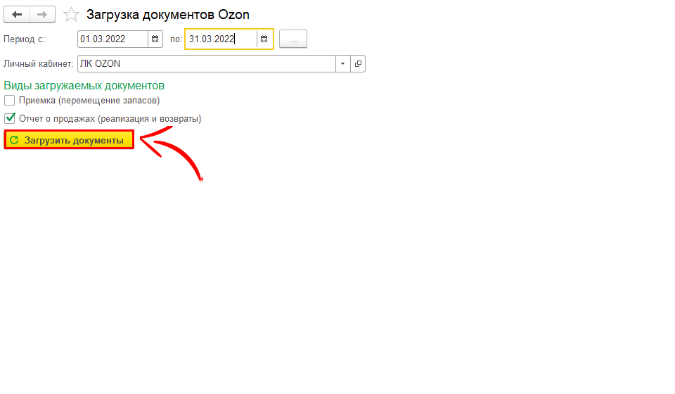 Обращаем ваше внимание, что если у вас большие обороты на озоне, то загрузка документов может длиться несколько часов, поэтому рекомендуем вам поставить загрузку вечером, чтобы к утру у вас все прогрузилось. Если у вас большие обороты, то рекомендуем грузить не за месяц, а по 10 дней.