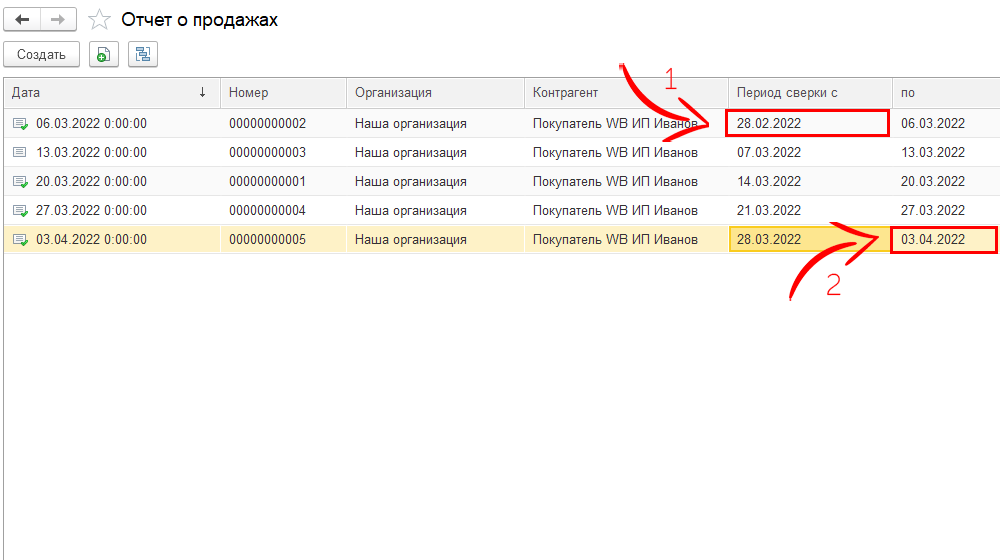 Проверяем, что начиная с первого числа по последний день месяца все отчеты по продажам загружены. В данном случае март начинается и заканчивается в середине недели, поэтому недели с 28 февраля по 6 марта и с 28 марта по 3 апреля нужно загрузить тоже;